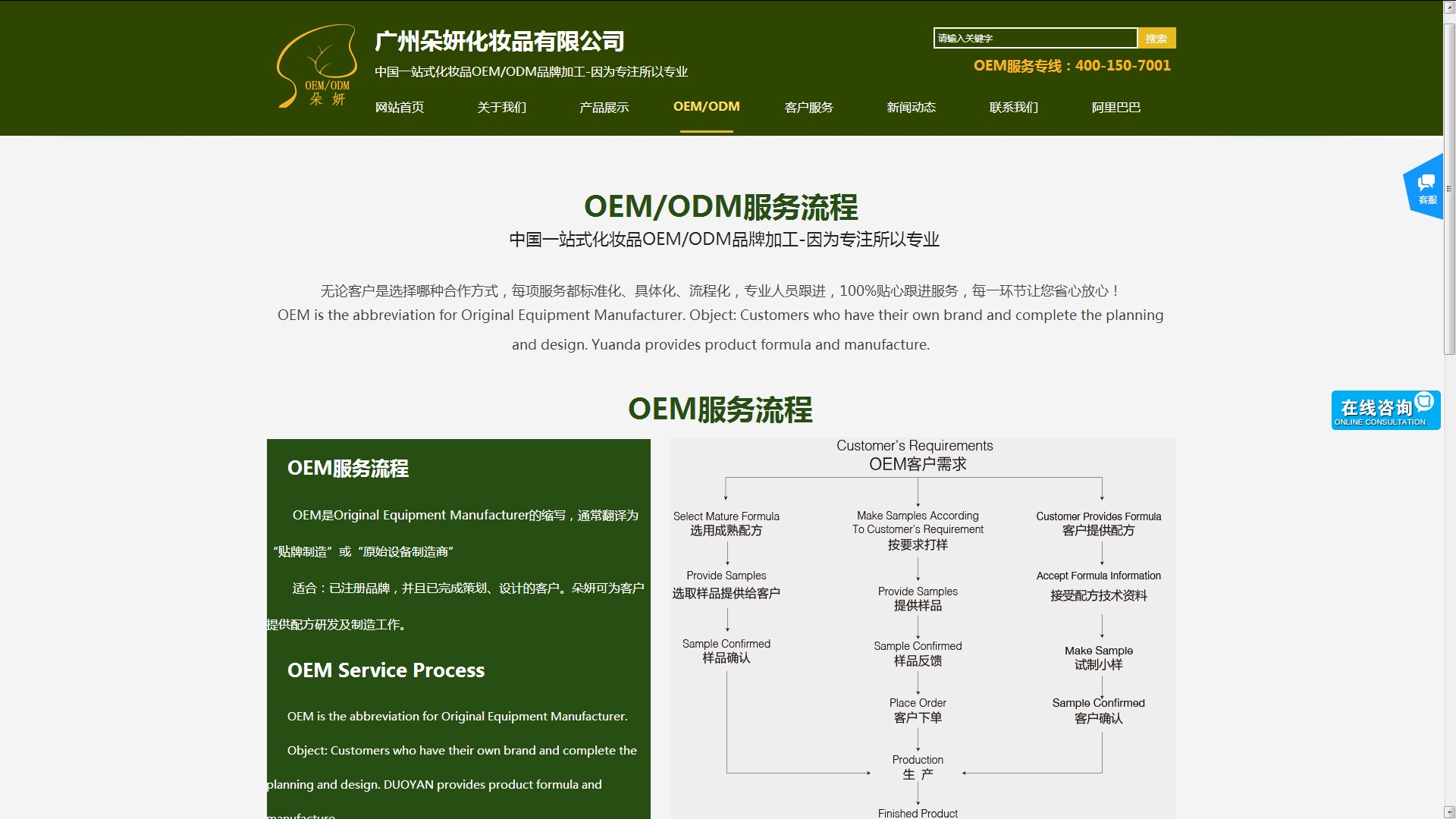 廣州朵妍化妝品有限公司主要承接護膚類產品,彩妝,洗護用品,精油的OEM/ODM代工生產,尤其在中高端護膚類及面膜類產品實施了行業公司"科研革命性的突破",目前擁有10條生產線及配套設備,每天能同時生產灌裝50個以上品種,日灌裝能力可達10萬支以上。