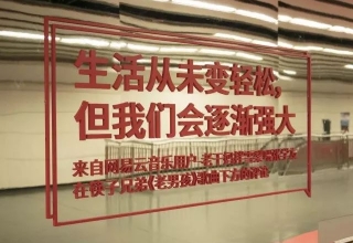 網易云的地鐵廣告又來了,趕在新年前,他們在北京的團結湖地鐵站,布置了一條“鏡面長廊”,上面用紅色的字體寫上了APP評論區中的“扎心”歌詞,希望路過的人能夠在即將到來的一年,“照見自己,照見希望”。