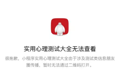 不僅如此,今天下午,當榜妹試圖通過二維碼進入“實用心理測試大全”時,發現該小程序已經無法查看。
