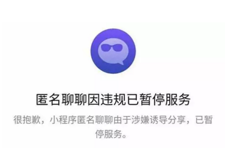 而幾個月前的另一款刷屏小程序“匿名聊聊”就沒這么幸運了。5月18日,“匿名聊聊”一度刷爆朋友圈,5小時達到1700萬PV,但在19日凌晨,這款小程序已經暫停服務,顯示的原因是“涉嫌誘導分享”。