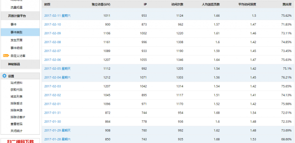 我們網(wǎng)站的統(tǒng)計數(shù)據(jù)顯示的不僅僅是用戶如何瀏覽我們的網(wǎng)站,它們廣州企業(yè)網(wǎng)站建設(shè)公司還會顯示我們是否應(yīng)該優(yōu)化網(wǎng)站的設(shè)計,這其中我們應(yīng)該查看的最重要的分析數(shù)據(jù)就是我們的跳出率。以下是在某網(wǎng)站的CNZZ(分析)部分流量截圖。從中我們可以看到,其日均跳出率已達(dá)到70%左右,也反應(yīng)了該網(wǎng)站的用戶粘度??上攵@是多么糟糕的情況!