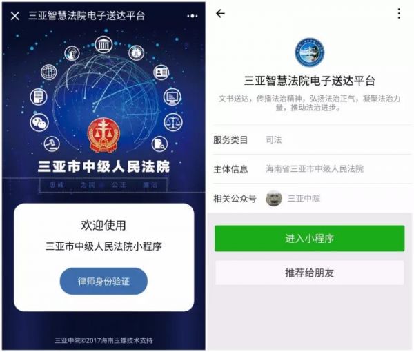 昨天,廣州微信小程序開發還上線了全國首個微信電子訴訟文書送達小程序“三亞智慧法院電子送達平臺”。律師在經過驗證后,能簽收訴訟文書,避免了紙質材料丟失的風險和人為失誤操作。