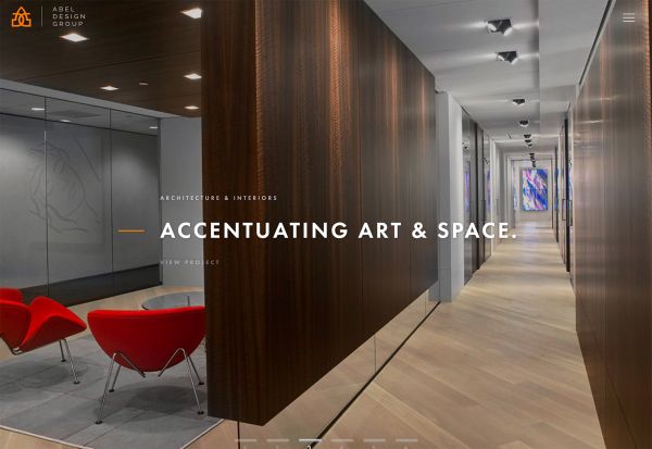 Abel Design Group 這個網(wǎng)站中,設計師并沒有直接采用傳統(tǒng)意義上的下劃線,而是使用橙色的線條置于文本前方,起到了和下劃線相似的功用。