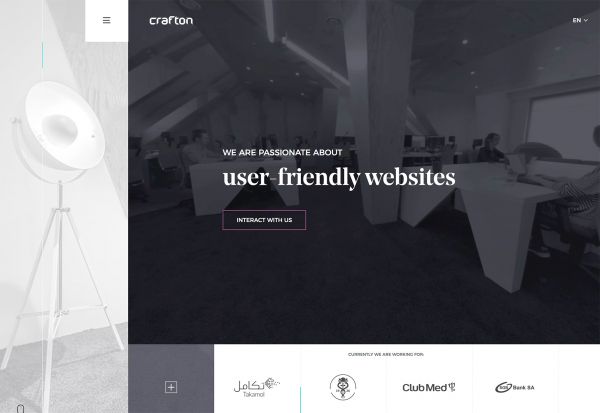 就像下面的 Crafton 這個網(wǎng)站,稍稍加入一點紅色,就讓整個設計一下子鮮活了起來。