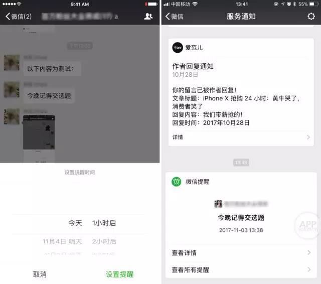 在此次更新中,微信適配在同日發售的 iPhone X,并支持面容 ID(Face ID)支付。此外,新版本還增加消息延后提醒、查找聊天中交易信息等功能。