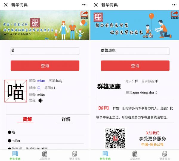 除了基本的查詢功能,用戶還能了解成語故事,并將故事分享給微信好友。