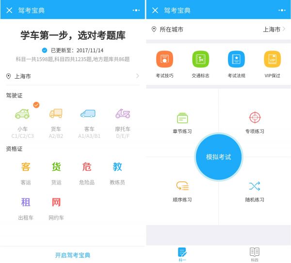 在考取駕照的過程中,考生需要通過科目一、科目四的理論考試。“駕考寶典”應運而生,提供模擬考試題庫,幫助考生多加練習,通過考試。