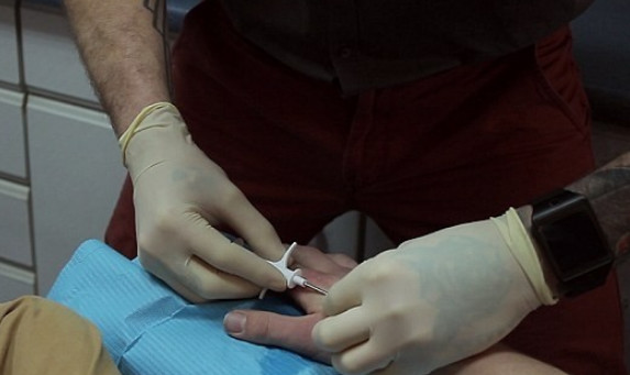 芯片一般植入到拇指和食指之間,因為這里可以避過骨頭和復雜的神經區域,一般用注射器來植入,感覺和打針比較像。