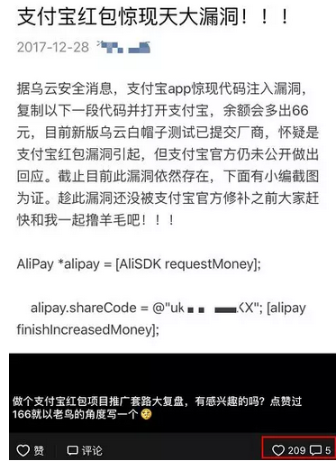 基于產(chǎn)品特性,微博跟微信、QQ不同的是,熱門微博評論區(qū)會是不少人的發(fā)力點。這位兄弟的套路頗有網(wǎng)賺界老鳥的風范,一看就是鉆研過社會工程學的,活脫脫把推廣紅包強行“解釋”成了口令紅包,反正普通用戶眼里都長差不多。趁著年底微博大v們給粉絲發(fā)福利的熱烈氛圍,類似的招照樣能玩,雖然不少網(wǎng)民被日醒了,但咱們?nèi)硕喟。呐旅襟w喊破喉嚨,作為外行大部分人的腦子都會選擇自動屏蔽。但他的玩法仍舊不夠完美,灑家安排人去微博測試結(jié)果顯示,吱口令在微博評論區(qū)會被自動屏蔽,評論下面的評論暫時不會。要升階的話涉及一個核心小技術(shù),那就是把吱口令轉(zhuǎn)碼成中文口令,就可以完美逃過微博屏蔽。微博主頁發(fā)條置頂微博,然后去各處發(fā)騷評論引流借助這一小技巧,制造支付寶賞金紅包就是支付寶口令紅包假象這一玩法將是下半場的階段性藍海級套路。