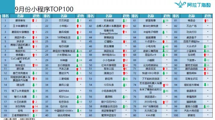 TOP100的小程序當中,零售類小程序持續走高,9月阿拉丁榜單中有20個零售類小程序。